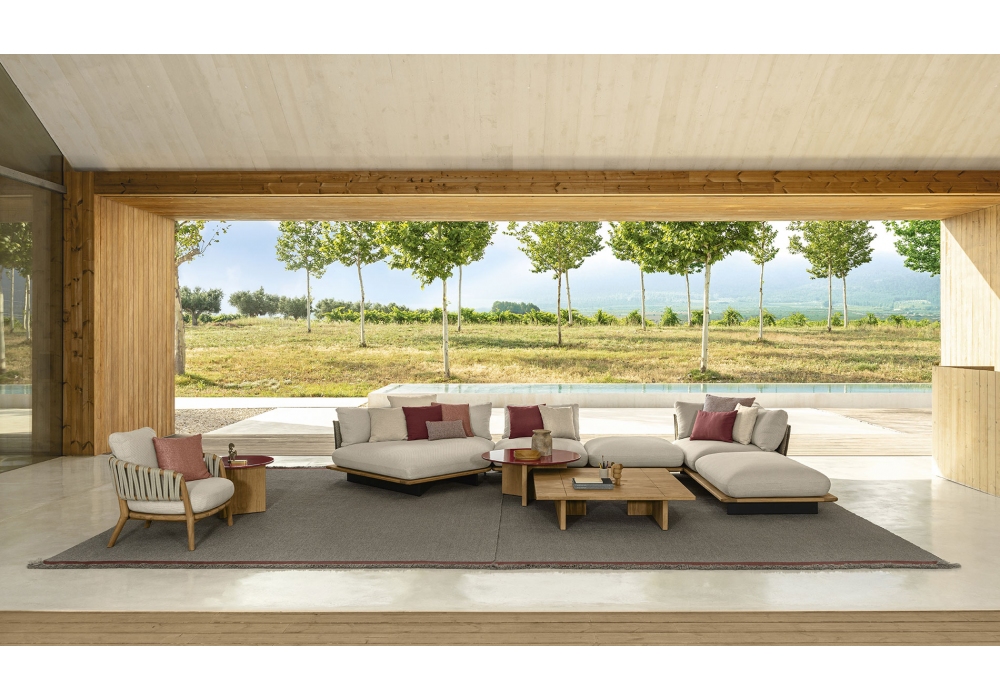 Venice Teak conçue par Ludovica & Roberto Palomba pour Talenti est une table basse en bois, disponible en différentes tailles.