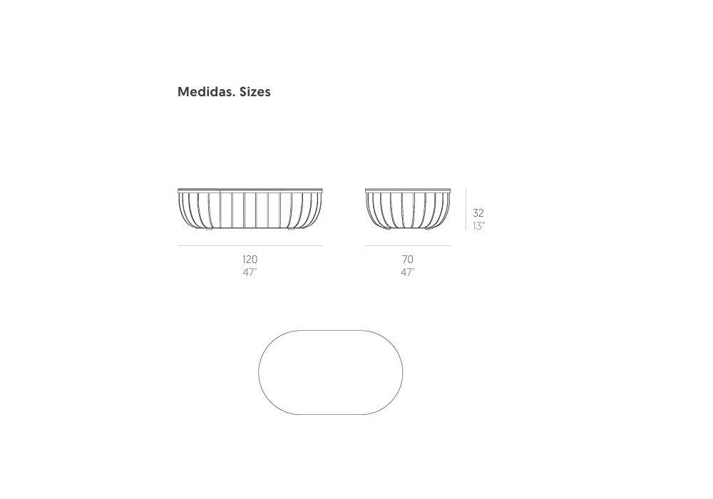 | Dimensions | Ø 90 cm x H 32 cm; 120 cm x 70 cm x H 32 cm. |