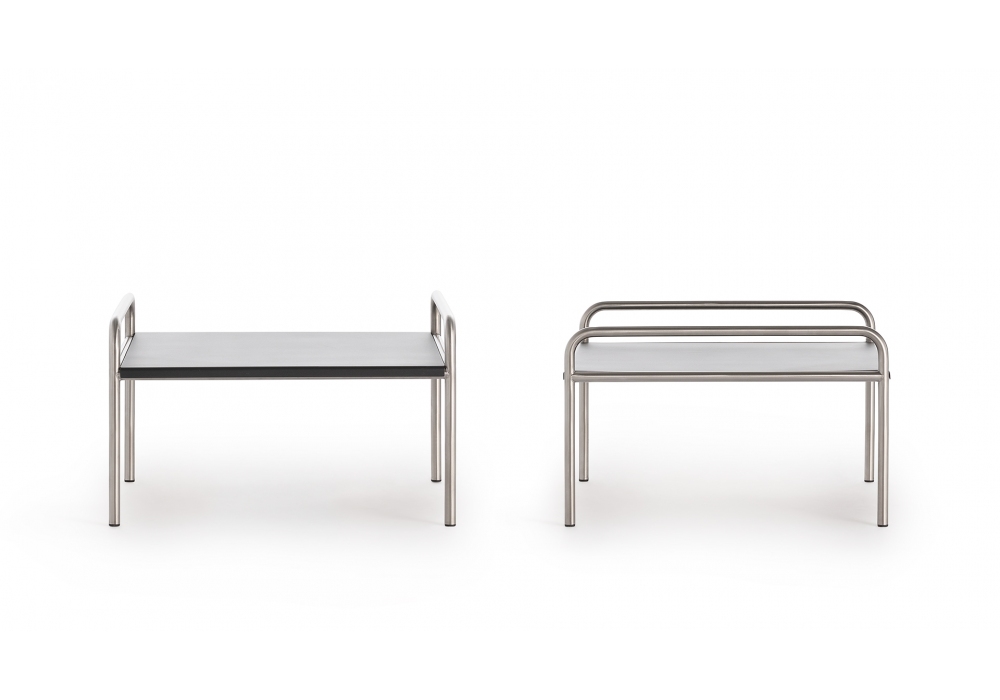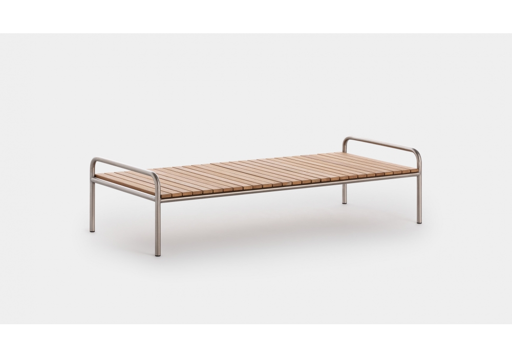 Onsen Table Basse conçue par Francesco Meda et David Quincoces pour Gandia Blasco est composée d'une structure tubulaire en acier inoxydable naturel ou peint, le plateau recouvert d'aluminium thermolaqué ou de lattes de bois d'iroko, un bois aux grandes qualités pour une utilisation en extérieur. Disponible en différentes finitions.