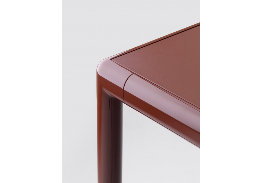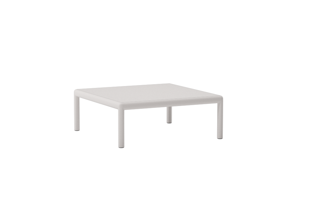 Passage Outdoor, conçue par Ronan Bouroullec pour Kettal, est une table basse d'extérieur dotée d'une structure en métal, disponible en finition brillante ou texturée. Le plateau est assorti à la structure texturée.