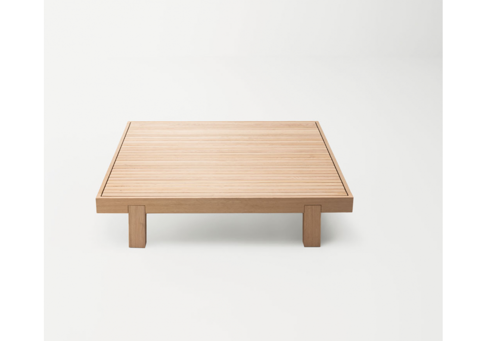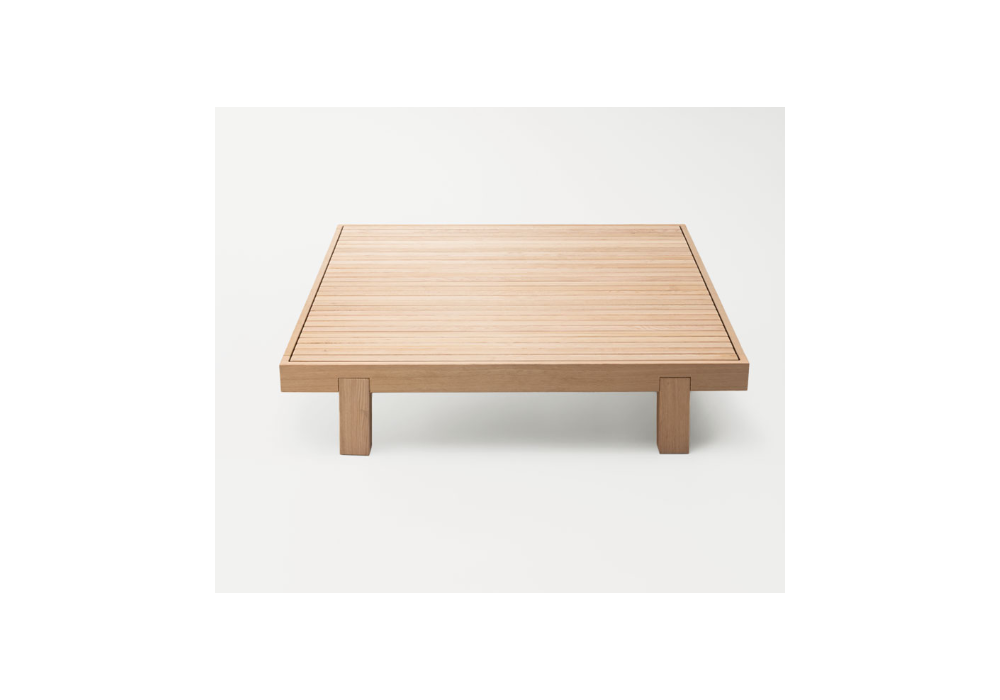 Toku conçue par Vincent Van Duysen pour Paola Lenti est une table d'appoint dotée d'une structure en cèdre massif traité avec un agent d'imprégnation naturel et de pieds en plastique. Son plateau est en lattes de bois ou en contreplaqué marin revêtu de tissu.
