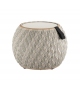 Créé par Stephen Burks, l'un des talents les plus brillants de la nouvelle génération de designers américains, DALA s'inspire des sièges improvisés des pays du Sud et du talent des artisans qui y vivent. Peut-être la première collection de meubles tressés offrant une surface et une structure unifiées, DALA est construit à partir d'un cadre grillagé en aluminium extrudé au revêtement poudré de couleur vive. À travers cette grille géométrique, les maîtres-tisseurs de DEDON ont tissé les brins d'une nouvelle fibre écologique révolutionnaire. Après des années de développement, cette fibre créée à partir d'emballages d'aliments et de boissons recyclés et mêlés de polyéthylène recyclable compte parmi les innovations apportées au secteur par DEDON. La collection DALA comprend un fauteuil, un ottoman et un tabouret - qui peut être utilisé comme table d'appoint - ainsi qu'une table d'appoint standard. Légères, transportables et conçues dans un esprit détente, avec leurs coussins confortables en tissu high-tech Batyline, les pièces de la ligne DALA se posent directement sur le sol et peuvent être facilement déplacées d'un bout à l'autre d'un patio, ou transportées sur la plage en bas d'un escalier. Disponibles en trois gammes de couleurs gaies - Stone, Fire et Grass - les pièces sont décorées d'un motif de lignes d'épaisseurs variables. Les emballages alimentaires recyclés donnent à la fibre DALA un éclat particulier et une texture luxueuse presque semblable à celle du cuir et agréable au toucher. DALA, explique Burks, signifie " fabriquer " dans l'un des dialectes qu'il a entendus à travers le monde lors d'un projet avec des artisans .
