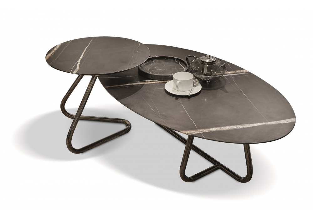 Alef conçue par Archirivolto pour Dema est une table basse avec structure tubulaire en métal avec anti-dérapant en matière thermoplastique moulée. Dessus en marbre. Disponible en différentes finitions et dimensions.