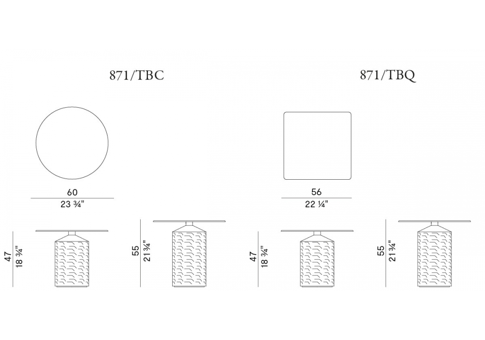 | Dimensions | Ø 60 x H 55 cm; 56 x 56 x H 55 cm. |