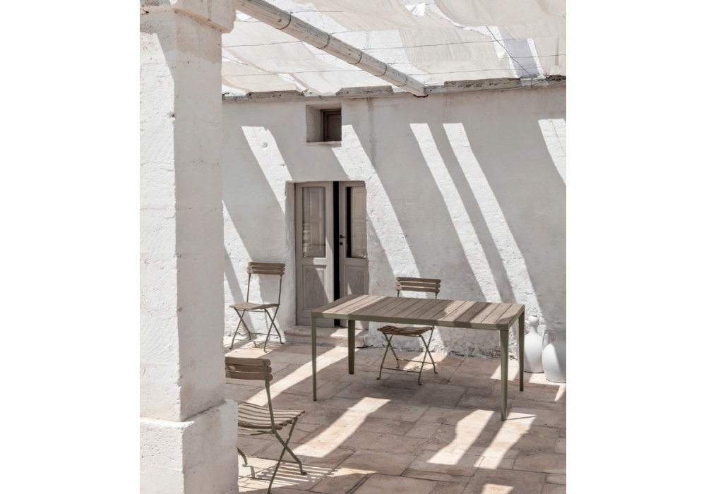 Laren conçue par Ethimo est une table d'extérieur avec structure en métal et teck en différentes finitions. Disponible en différentes tailles.