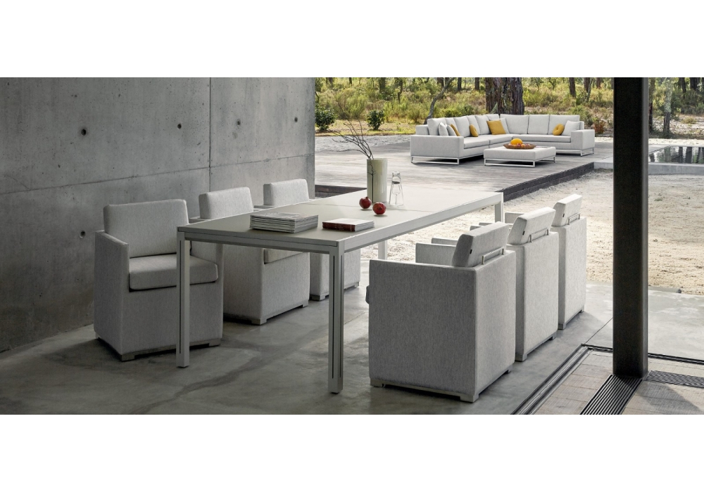 Luna conçu par Manutti est une table extensible avec structure en aluminium et plateau disponible en différentes finitions. La table Luna est extensible et dotée d’un piètement rétro-éclairés avec LED. Disponible en différentes dimensions.