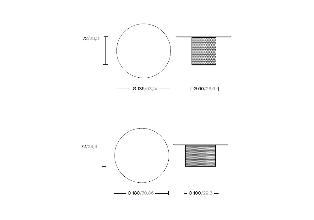 | Dimensions | Ø 135 x H 72 cm; Ø 180 x H 72 cm. |