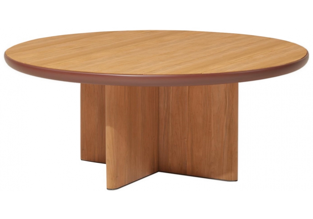 Cala conçue par Doshi Levien pour Kettal est une table à manger ronde avec base en bois ou aluminium vernis et plateau disponible en aluminium, teck ou marbre. Aussi disponible en 2 dimensions.