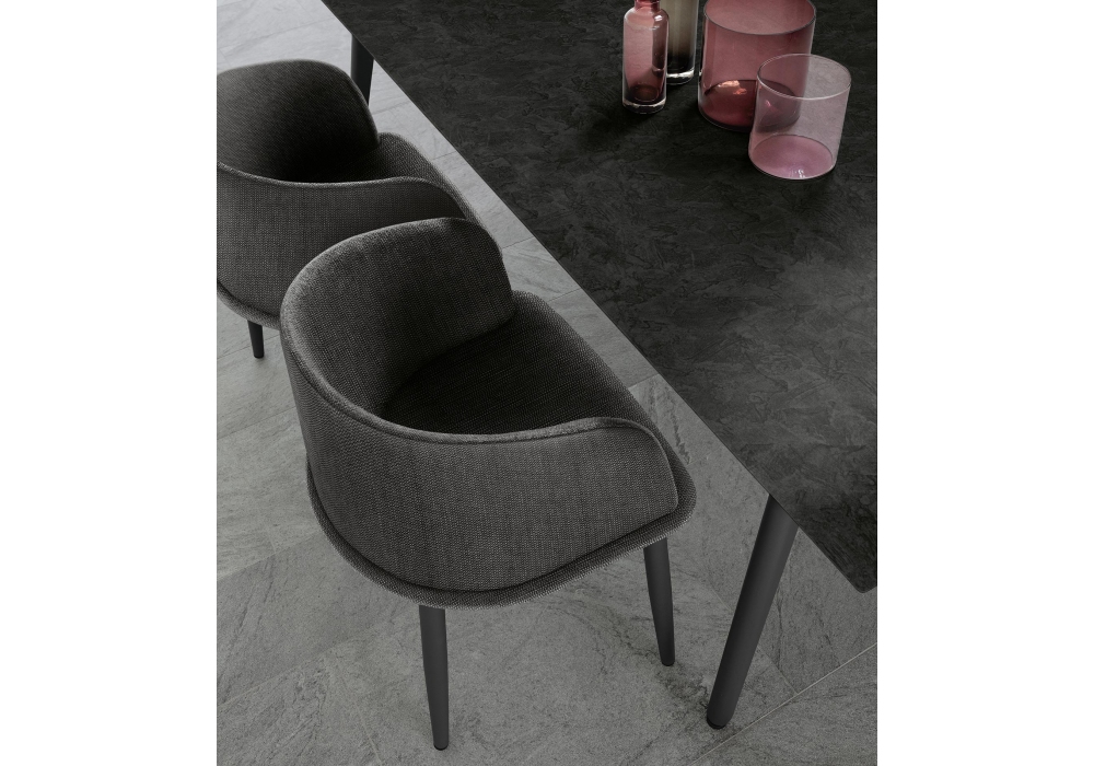 Cleo Soft Alu conçue par Marco Acerbis pour Talenti est une table avec structure en aluminium blanc ou graphite et plateau en fibrociment gris clair ou gris foncé.