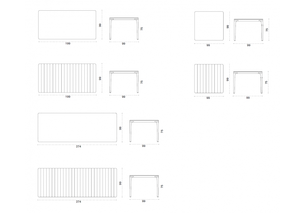 | Dimensions | 99 x 99 x H 75 cm; 199 x 99 x H 75 cm; 274 x 99 x H 75 cm. |