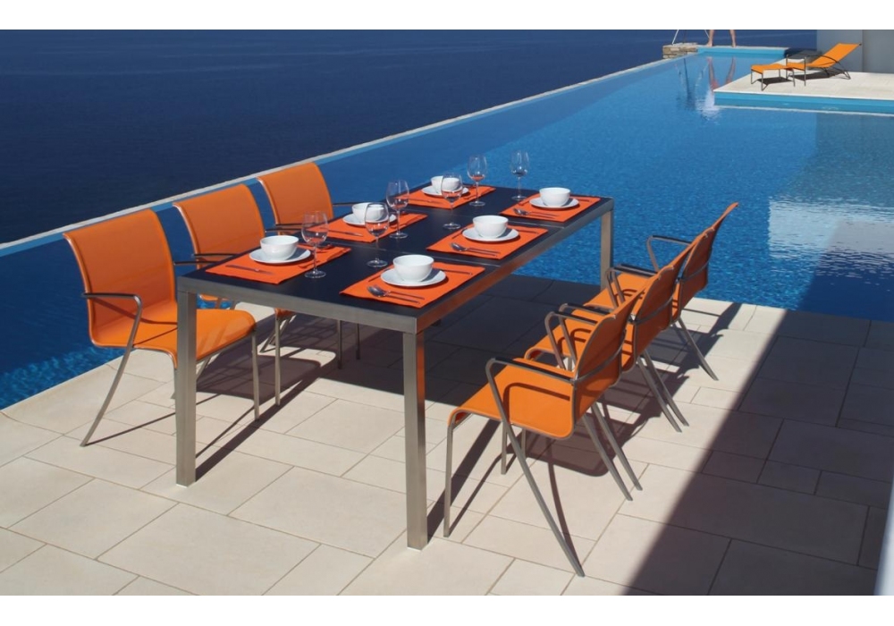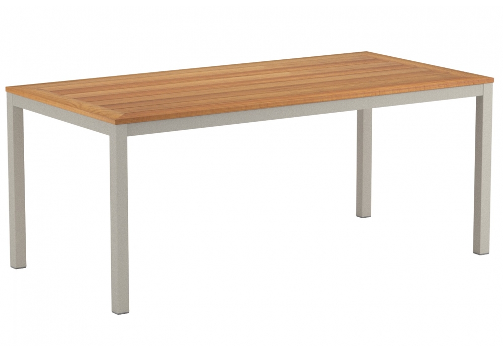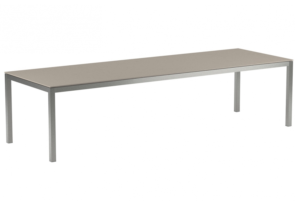 Taboela conçue par Kris Van Puyvelde pour Royal Botania est une table avec structure en acier inoxydable ou aluminium. Plan en teck, céramique ou verre. Disponible en différentes finitions et tailles.