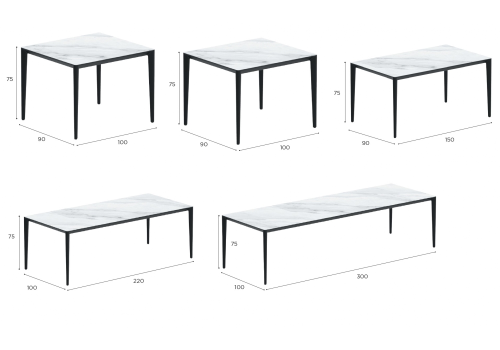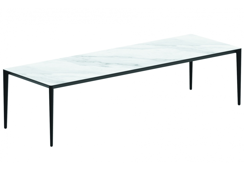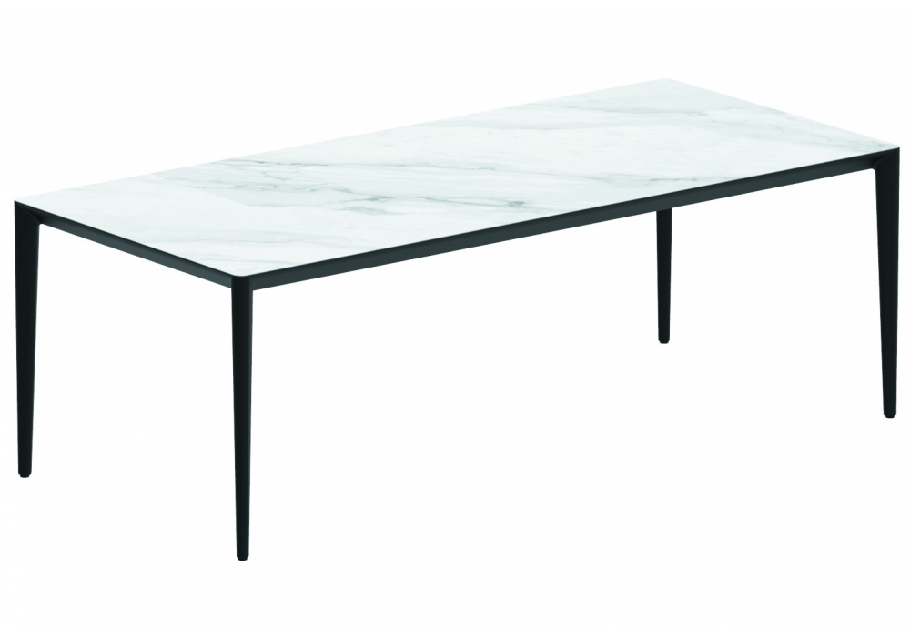 U-Nite conçue par Kris Van Puyvelde pour Royal Botania est une table avec structure en aluminium ou en teck et plan réalisé en céramique ou en teck. Disponible en différentes finitions et couleurs.