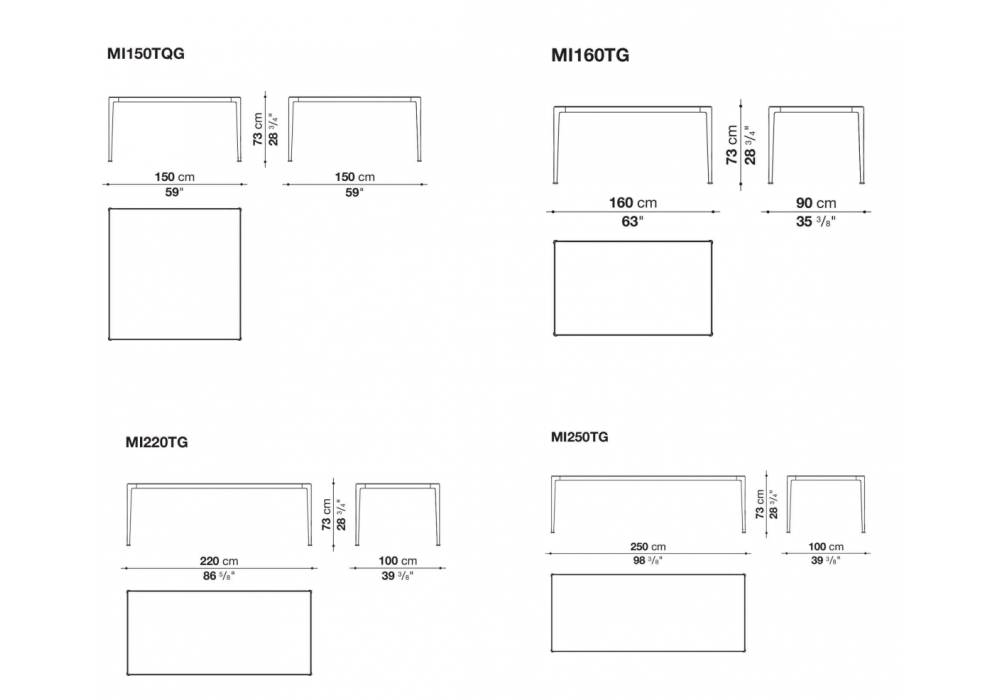| Dimensions | 150 x 150 x H 73 cm; 160 x 90 x H 73 cm; 220 x 100 x H 73 cm; 250 x 100 x H 73 cm. |