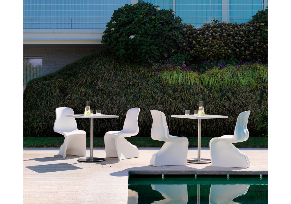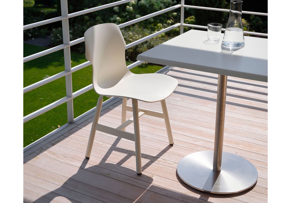 T1 Bistrot Extreme Outdoor conçue par Casamania & Horm est une table réalisée avec une structure en acier. Plateau en Werzalit blanc, très résistant aux chocs, à la chaleur, aux intempéries, aux rayons UV et aux agents chimiques.