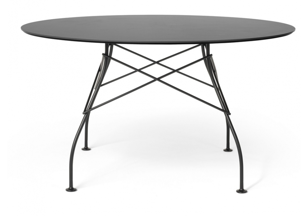 Glossy Outdoor conçue par Antonio Citterio & Oliver Löw pour Kartell est une table d'extérieur réalisée avec une structure en acier peint et un plateau en grès finition marbre. Disponible en différentes finitions et dimensions.