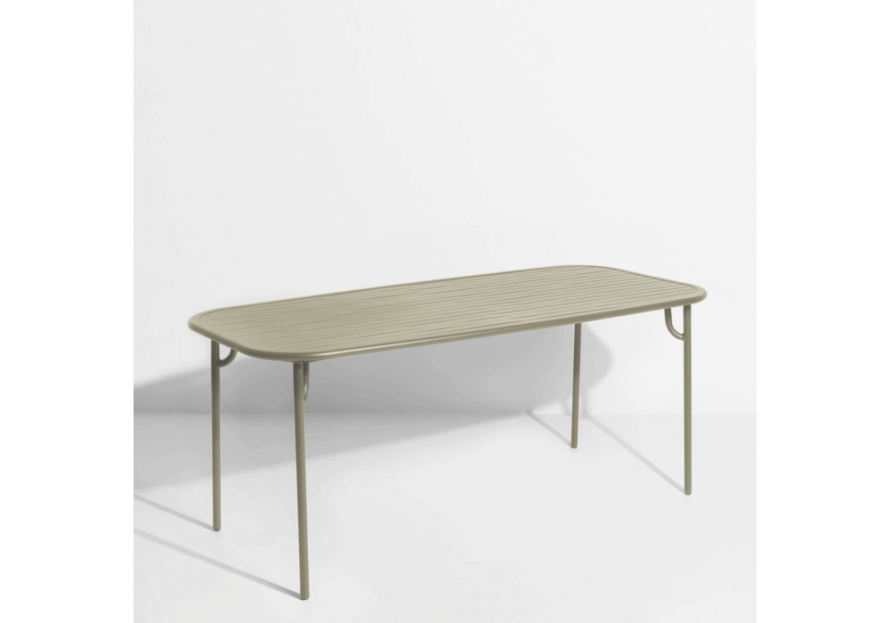 Week-end conçue par Studio Brichet-Ziegler pour Petite friture est une table rectangulaire en aluminium pour usage extérieur. Disponible en différentes finitions et dimensions.