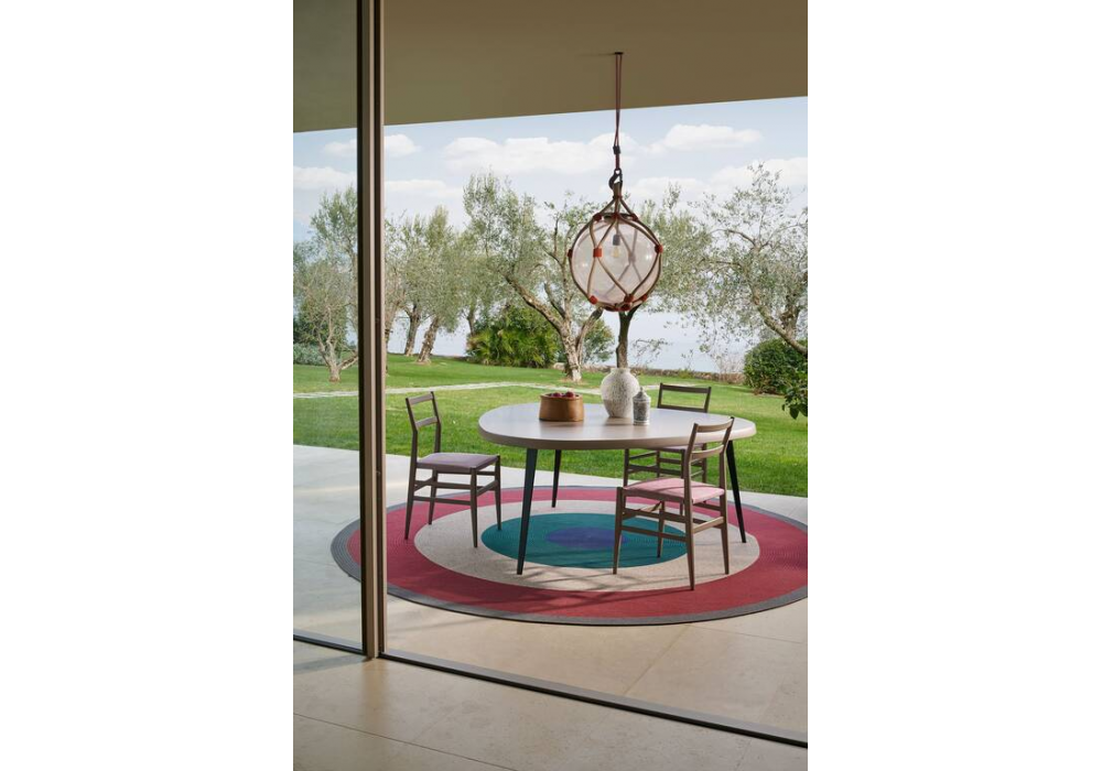 541 Mexique Outdoor conçue par Charlotte Perriand pour Cassina est une table réalisée avec un plateau en bois laqué mat et des pieds en acier inoxydable peint en noir mat. Disponible en différentes finitions et dimensions.