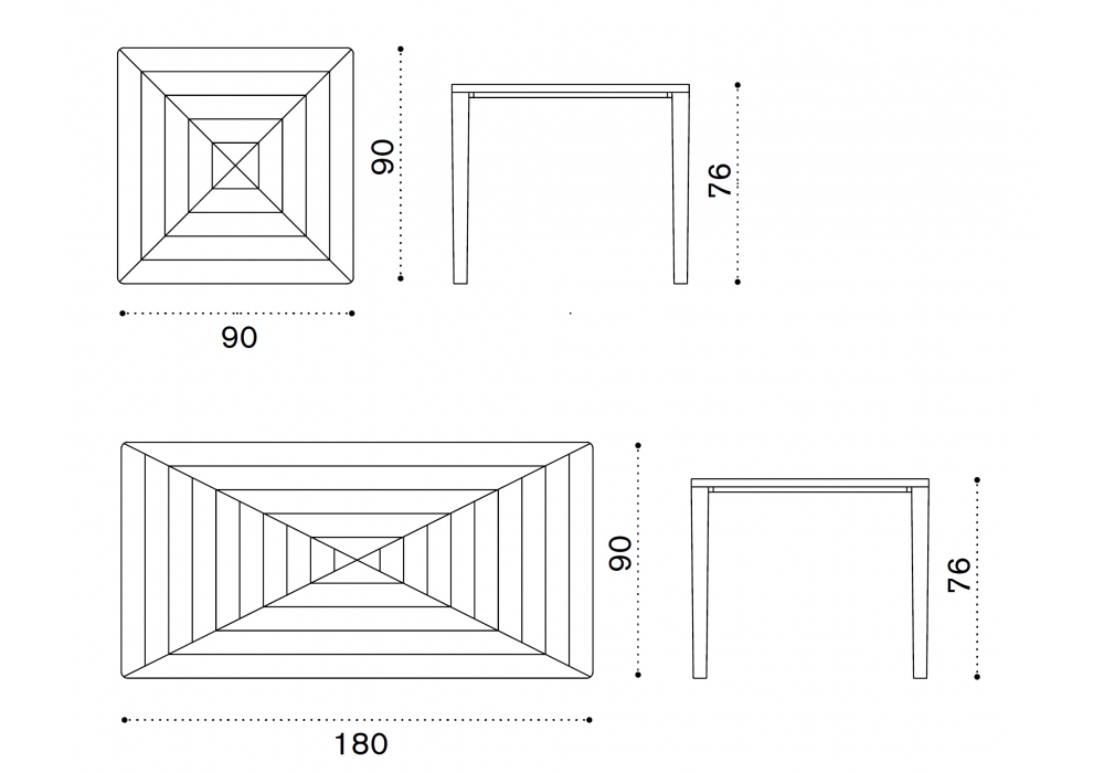 | Dimensions | 90 x 90 x H 75 cm; 180 x 90 x H 76 cm. |