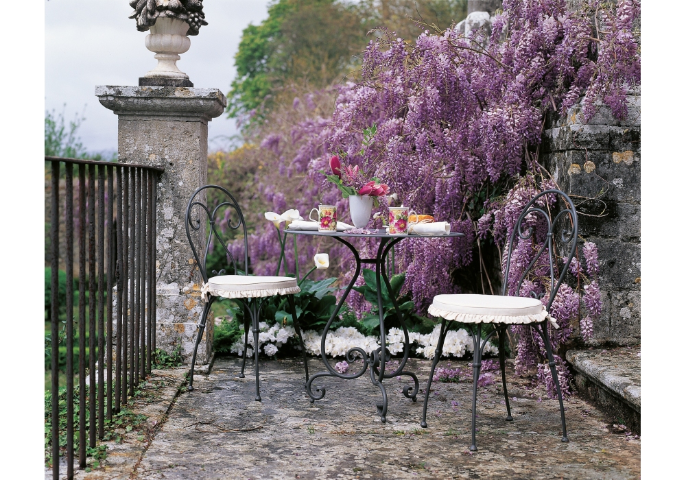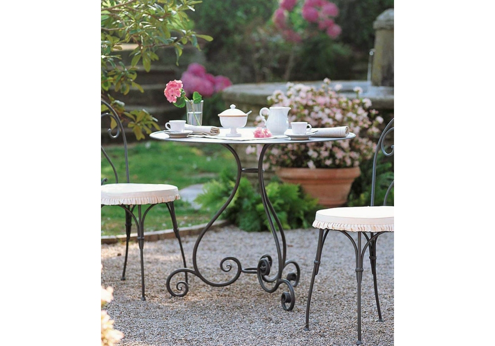Aurora produite et signée par Unopiù est une table d'extérieur circulaire entièrement structurée en fer forgé à la main peint en couleur graphite. Aurora est disponible en différentes tailles.