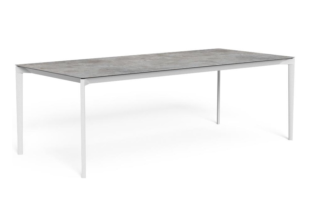 Leaf conçue par Marco Acerbis pour Talenti est une collection de tables d'extérieur composée d'une base en aluminium et d'un plateau en vitter disponible en plusieurs couleurs.