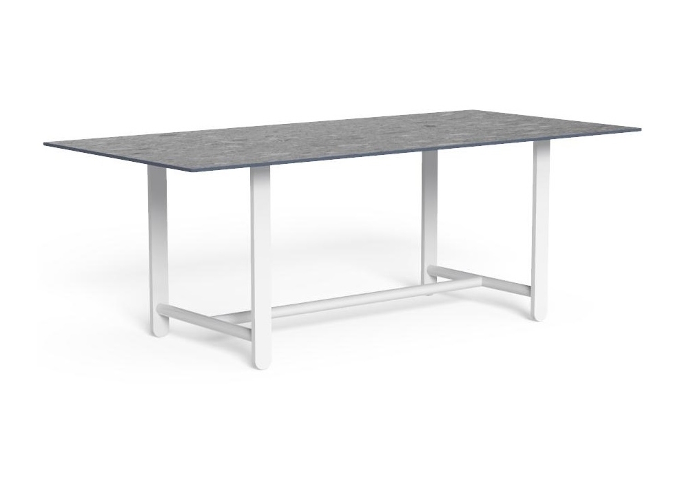 Riviera conçue par Marco Acerbis pour Talenti est une collection de tables d'extérieur composée d'une base en aluminium et d'un plateau en grès.
