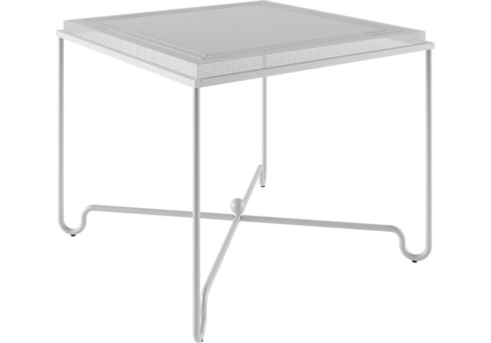 Tropique conçue par Mathieu Matégot pour Gubi est une table d'extérieur avec structure en acier inoxydable.