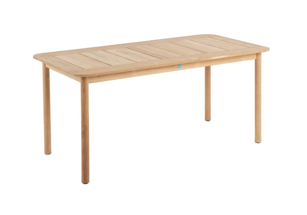 Pevero produit et conçu par Unopiù est une table d'extérieur quadrangulaire entièrement structurée en bois de teck naturel.