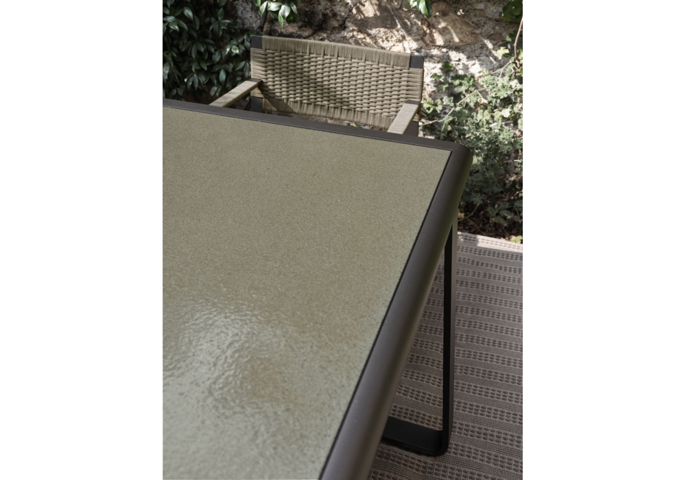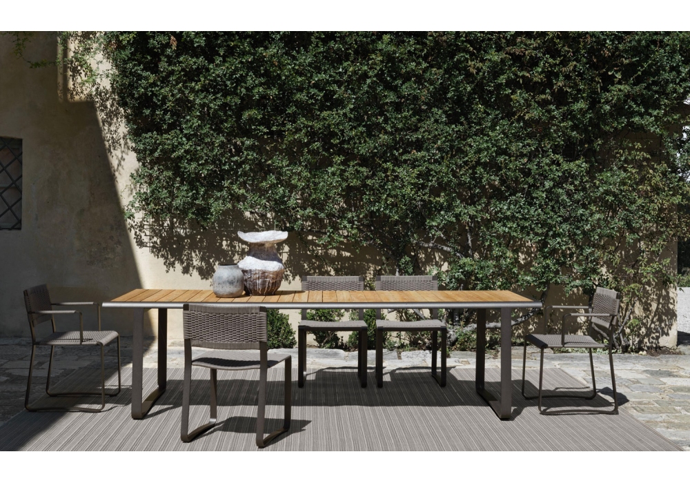 Golden Gate conçue par Vincent Van Duysen pour Molteni&C est une table réalisée avec des pieds en métal bruni et un plateau en pierre de lave ou en teck. Disponible en différentes finitions et dimensions.