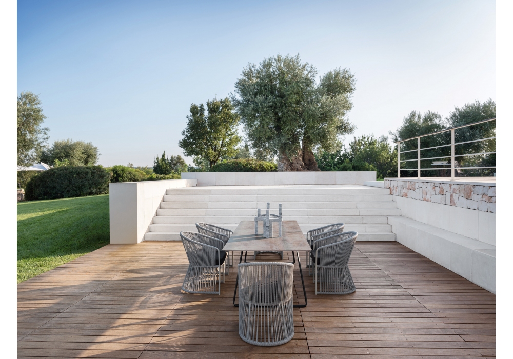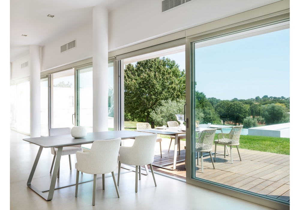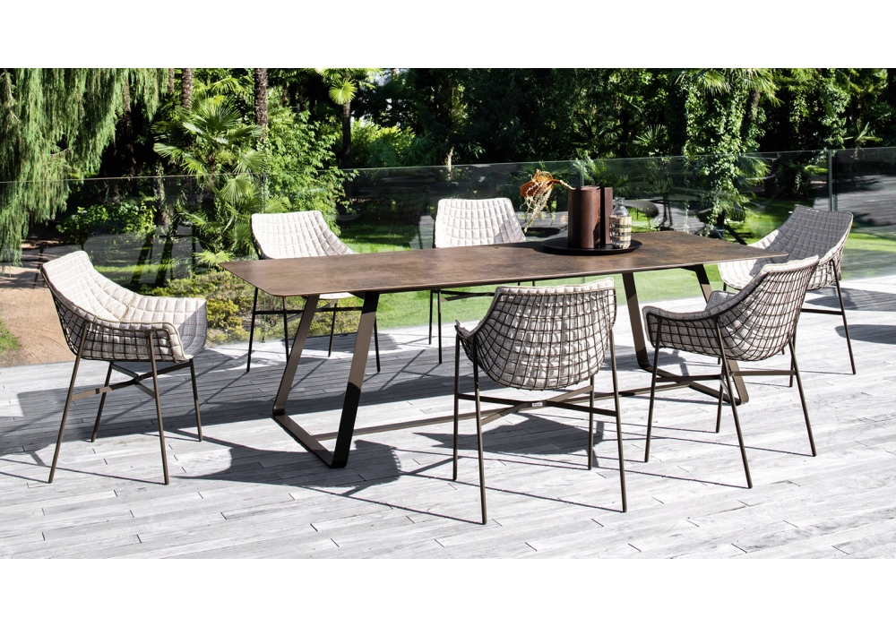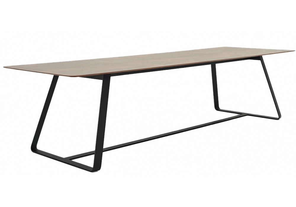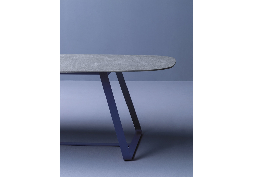 Kolonaki conçue par Calvi Brambilla pour Varaschin est une table avec base plate en acier étiré, traitée avec un cycle de protection par cataphorèse et finition en poudre. Plateaux rectangulaires ou elliptiques en HPL et céramique. Disponible en différentes finitions et en différentes tailles.