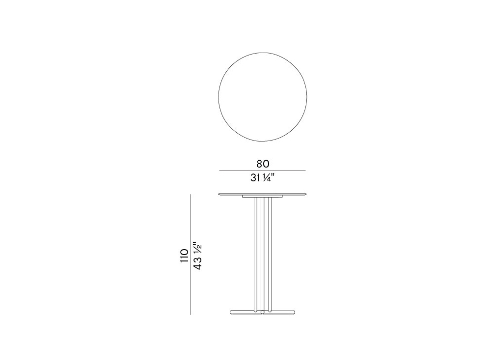 Graphic Outdoor conçue par Victor Vasilev et Mario Ferrarini pour Potocco est une table haute d'extérieur avec base en métal peint et plateau en HPL anthracite.