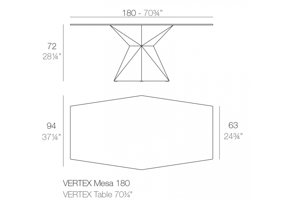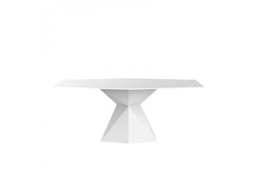 Vertex conçue par Karim Rashid pour Vondom est une table réalisée avec un piètement en résine de polyéthylène par rotomoulage et plateau en HPL. 100% recyclable. Article adapté à une utilisation intérieure et extérieure. Disponible en différentes finitions.