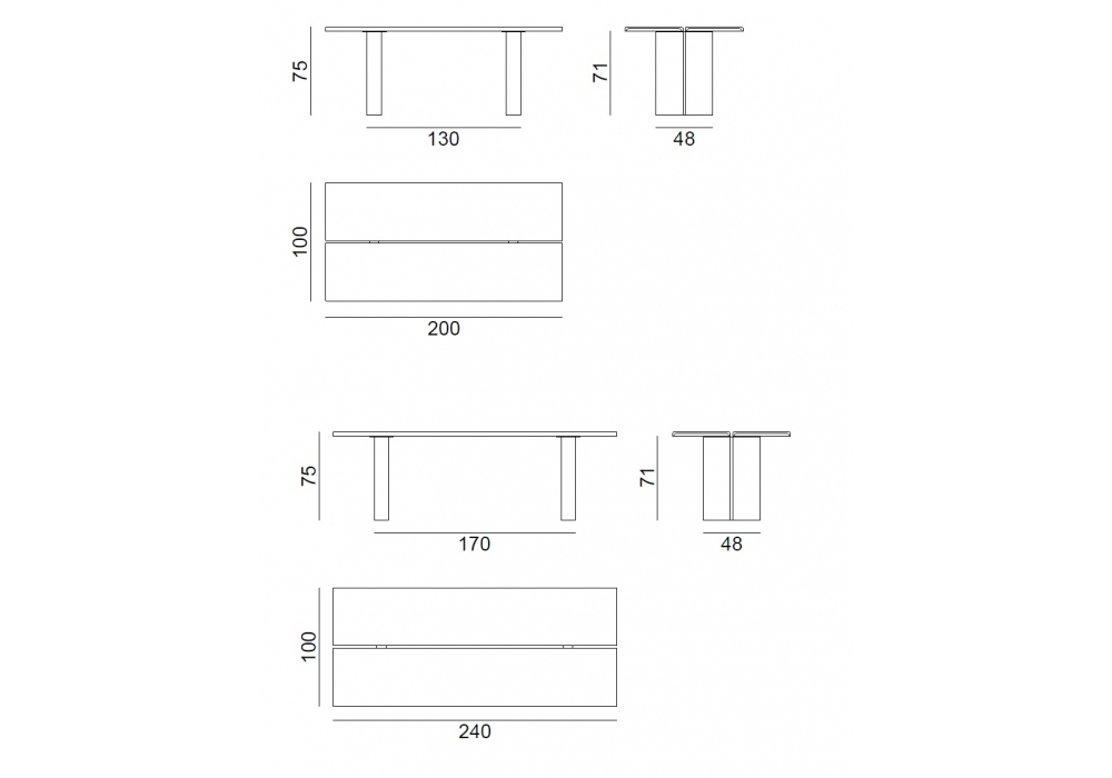 | Dimensions | 200 x 100 x H 75 cm; 240 x 100 x H 75 cm. |