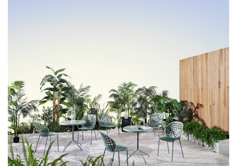Brise conçue par Federica Biasi pour Gervasoni est une table ronde ou carrée réalisée avec une base en acier inoxydable et un plateau en tôle perforée galvanisée ou en béton GFRC décoré. Disponible en différentes finitions et dimensions.