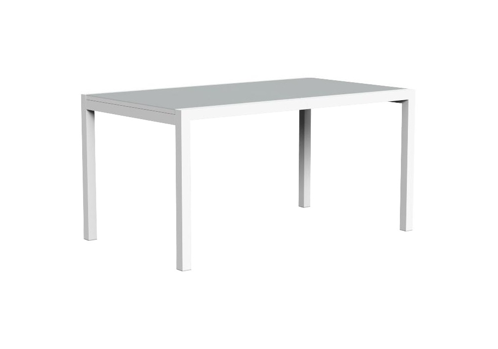 Maiorca conçue par Talenti est une table avec structure en aluminium peint en blanc et plateau en verre.