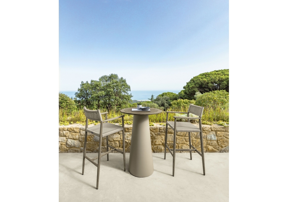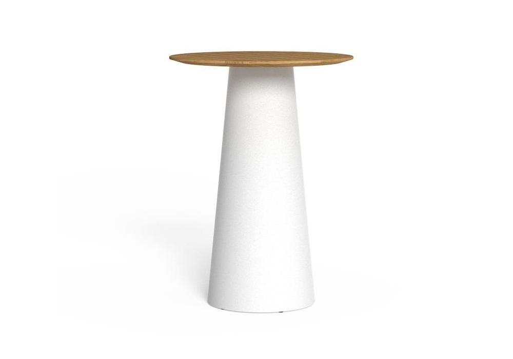 Dolcevita conçue par Talenti est une table de bar avec structure en aluminium et plateau en bois. Disponible en différentes finitions.