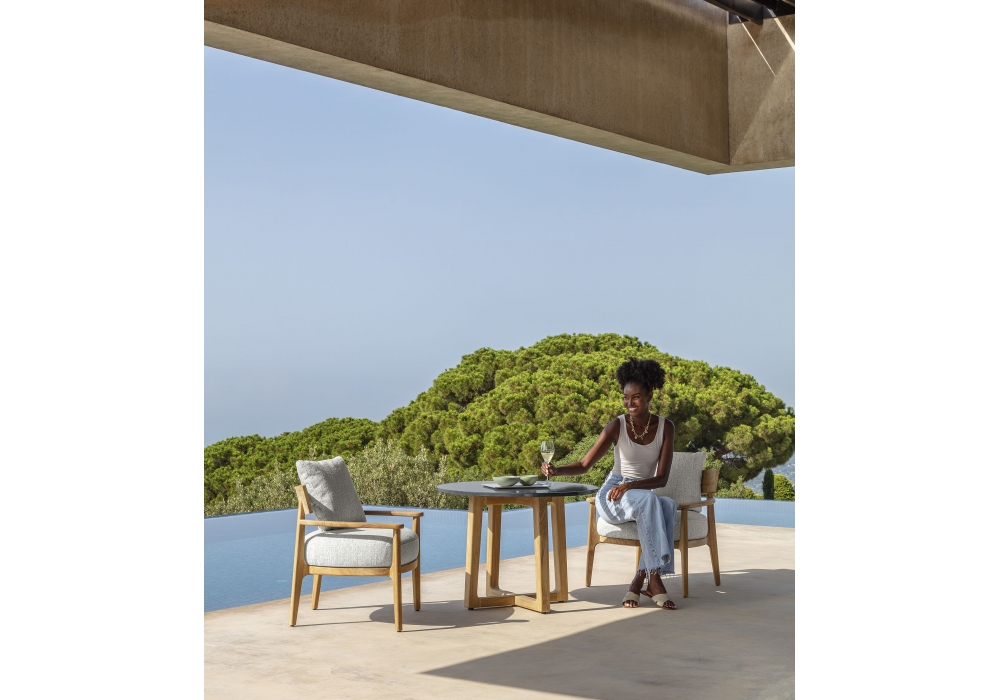 Ever conçue par Christophe Pillet pour Talenti est une table ronde en bois, plateau en grès ou pierre de lave. Disponible en différentes finitions.