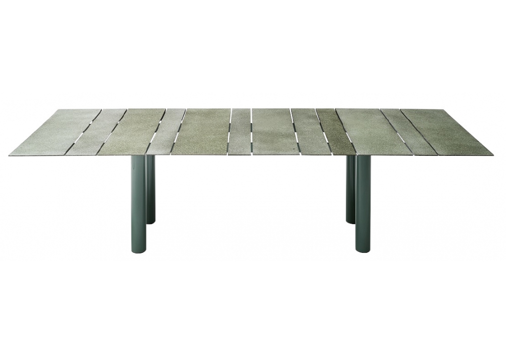 Dock conçue par Francesco Rota pour Paola Lenti est une table à manger rectangulaire avec structure en acier inoxydable peint ivoire mat ou graphite ou peint brillant, pieds réglables en acier inoxydable et caoutchouc. Plateau composé de lattes de différentes largeurs, en frêne traité thermiquement ou en lave naturelle. Disponible en différentes tailles. Convient pour l'extérieur.