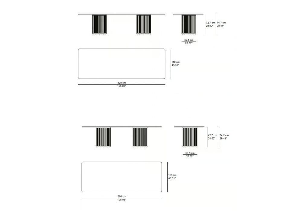 | Dimensions | 320 x 110 x H 74,7 cm; 290 x 110 x H 74,7 cm. |