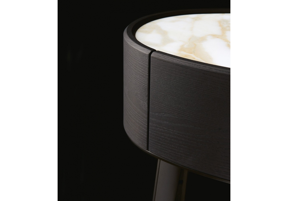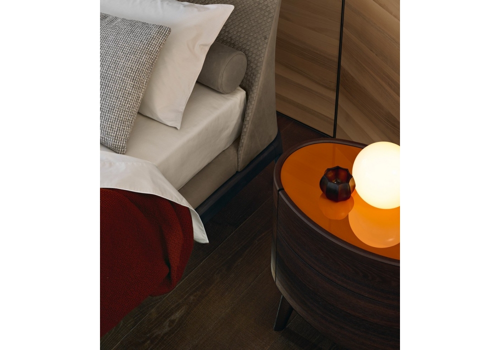 Kelly conçue par Emmanuel Gallina pour Poliform, est une table de chevet avec plateau en panneaux de particules plaqués, laqués, revêtus de cuir ou de marbre. Structure en bois plaqué et pieds en métal peint. Disponible en différentes finitions et modèles.