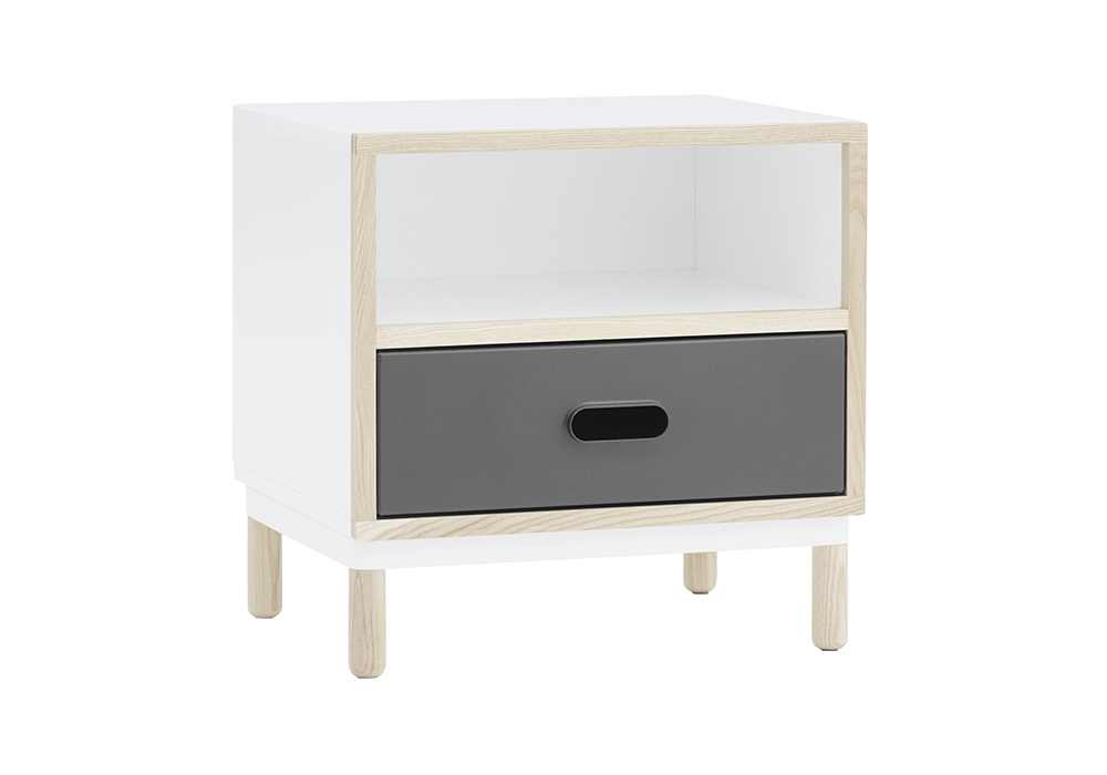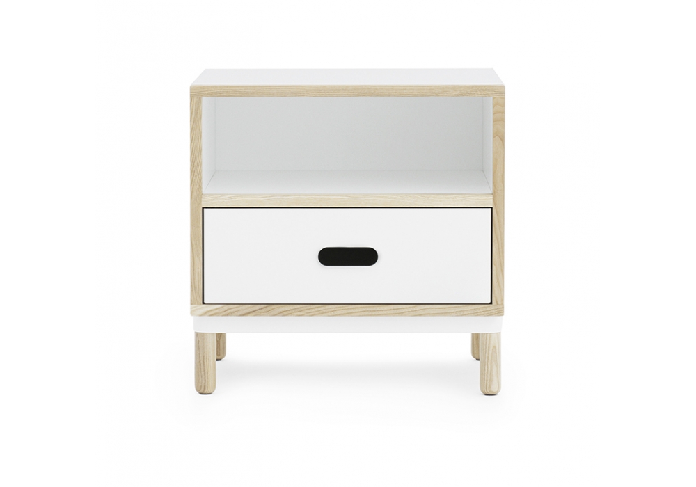 Kabino conçue par Simon Legald pour Normann Copenhagen est une table de chevet, réalisée en bois de frêne, MDF et aluminium. La table de chevet Kabino s'intègre parfaitement à côté du lit ou dans le couloir comme une petite console et les tiroirs ont la fonction soft-close pour une fermeture douce et silencieuse. Disponible en deux finitions différentes.