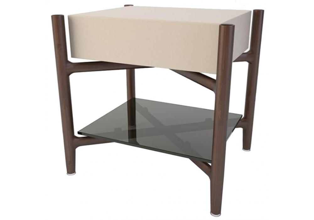 Regent 2 conçue par T. Colzani pour Porada est une table de chevet avec structure en noyer canaletta massif. Le tiroir avec fermeture douce est revêtus en cuir. L'étagère bas est en verre fumé. Également disponible dans la version avec tiroir en bois.