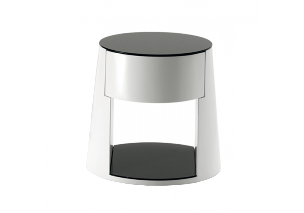 Nigel conçue par Studio 28 pour Cattelan Italia est une table de chevet avec tiroir en polyuréthane peint blanc. Plateaux en verre trempé extra clair peint blanc ou graphite.