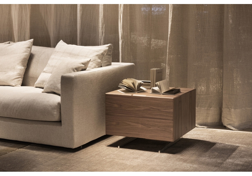 Piuma conçue par Antonio Citterio pour Flexform est une table de chevet avec structure en bois de noyer canaletto ou frêne disponible en différentes finitions. Pieds en aluminium. Disponible en deux dimensions.