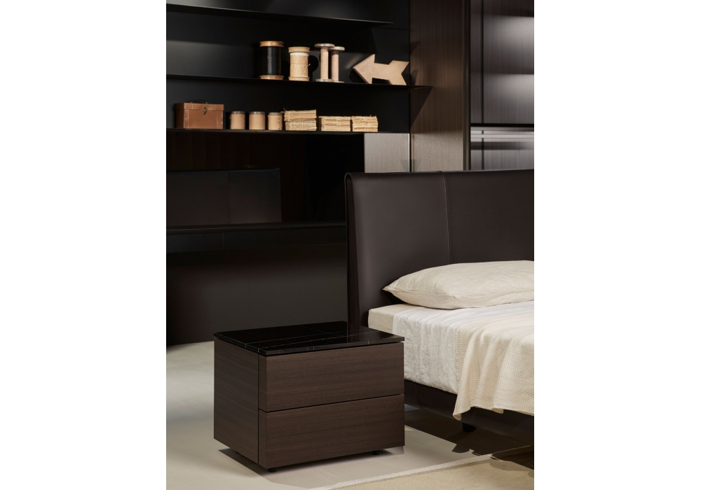 Hub conçu par Gabriele & Oscar Buratti pour Porro est une table de chevet composée d'une structure en bois et d'un plateau en cuir de selle ou en marbre.