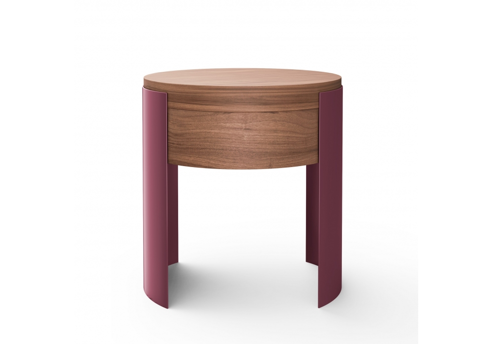 L60 Bio-Mbo conçue par Patricia Urquiola est une table de chevet avec structure en aluminium peint, un plateau en bois et un tiroir.