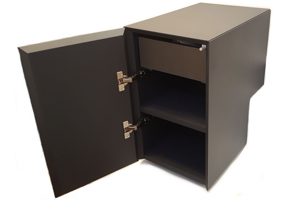 Formosa Accucciata conçue par DSH pour Minotti Italia est une table de chevet composée d'une porte battante et d'un tiroir interne. Fixation murale et pieds réglables. Finition gaufrée disponible en différentes couleurs et également en feuille d'or ou d'argent. Disponible avec ouverture à droite ou à gauche.