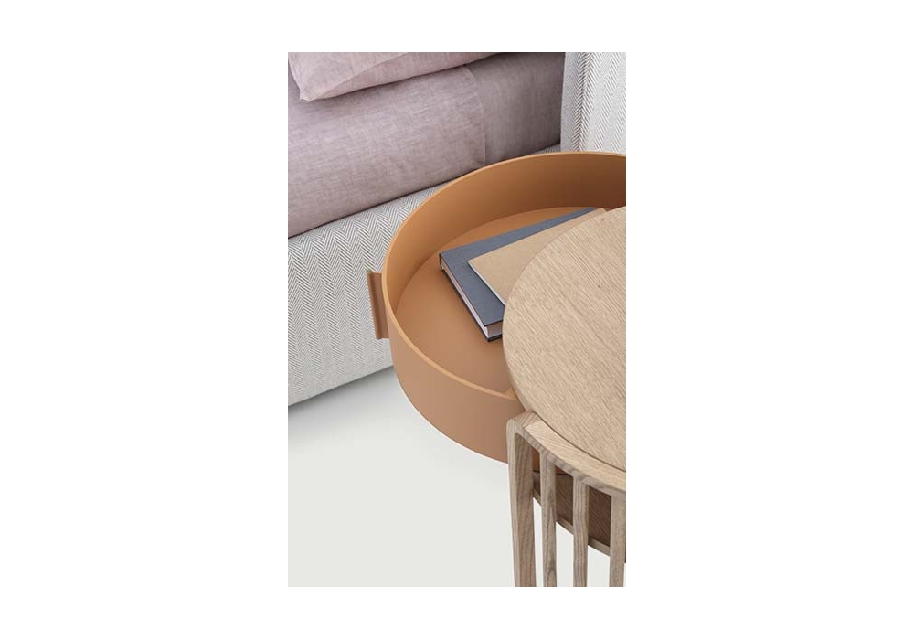 Palù conçue par Raffaella Mangiarotti pour Pianca est une table de chevet réalisée avec structure en noyer Canaletto massif ou frêne teinté. Tiroir recouvert de cuir régénéré avec décoration en laiton poli.