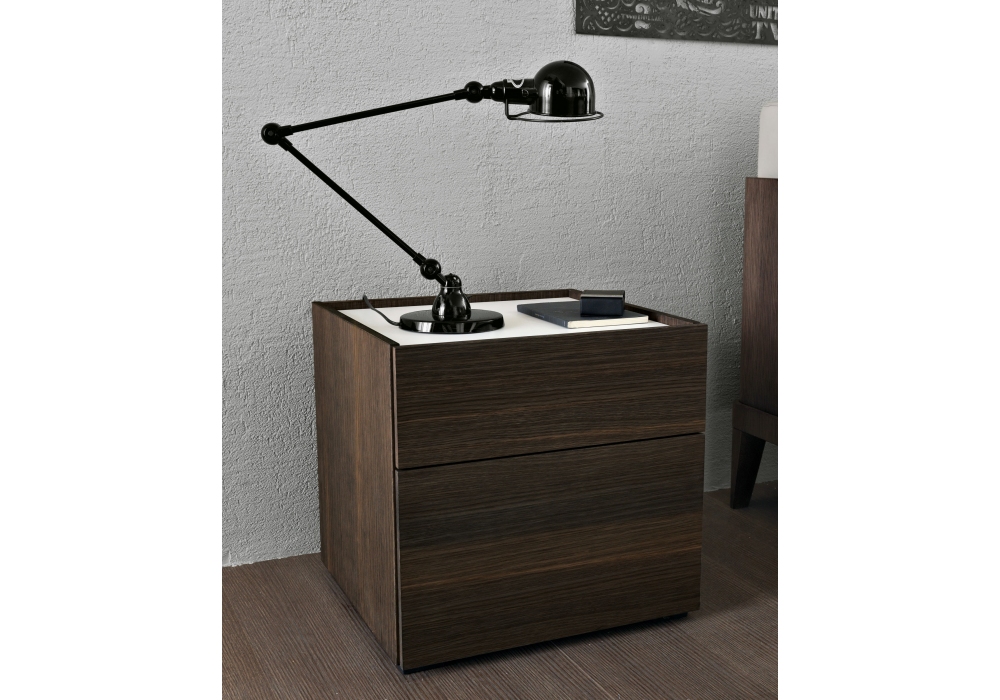 Cube conçue par MisuraEmme est une table de chevet qui combine des essences, des laques et du verre. Le plateau est légèrement plus bas que la structure et forme un plateau de support raffiné.