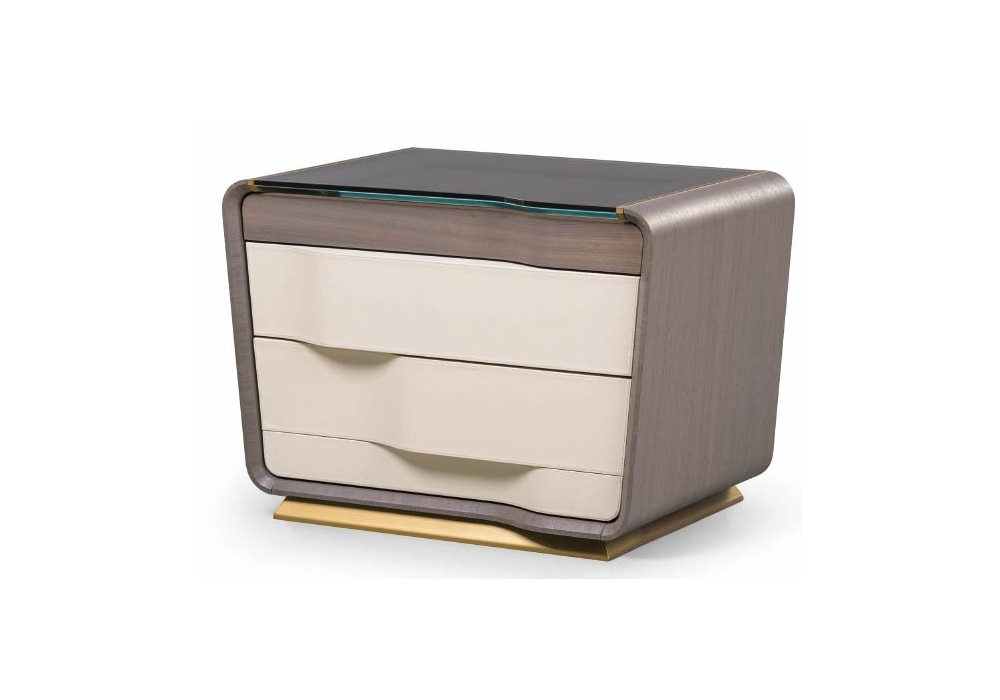 Melting Light conçue par Frank Jiang pour Turri est une table de chevet avec structure en MDF, contreplaqué, noyer massif et panneaux de particules plaqués noyer. Le plateau est en verre bronzé. Il y a deux tiroirs avec doublure en microfibre. En option, un éclairage LED peut être ajouté.