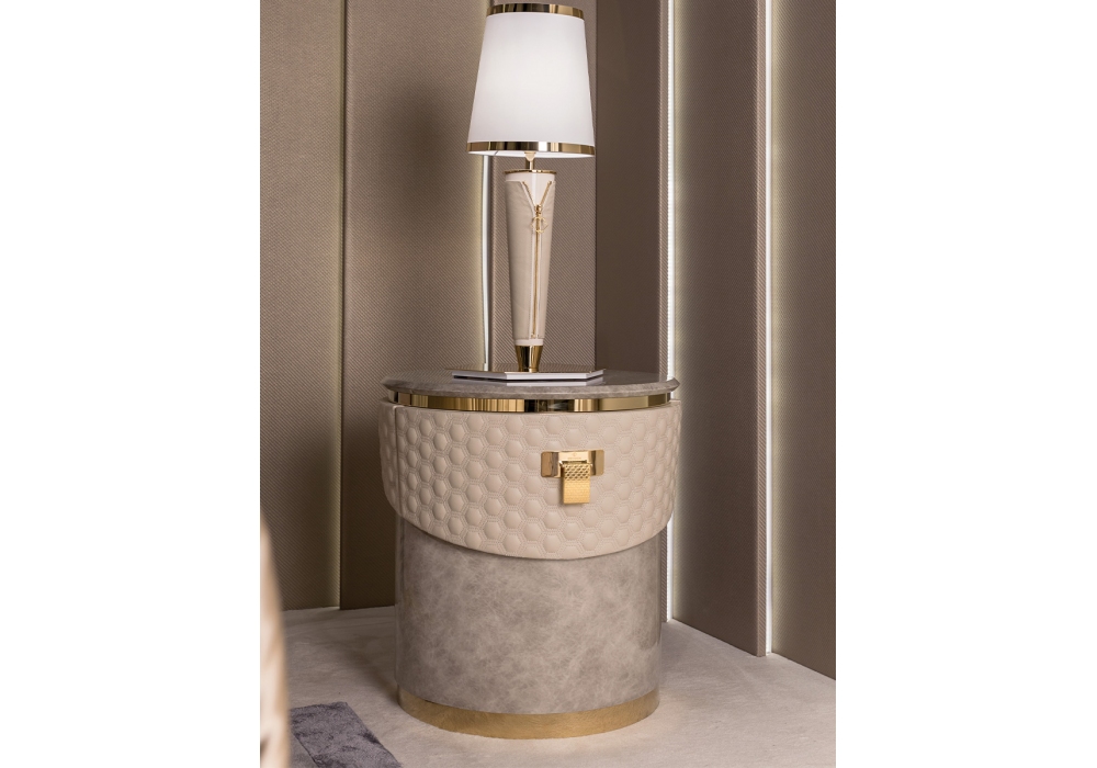 Vogue conçue par Andrea Bonini pour Turri est une table de chevet avec structure en MDF, contreplaqué et panneaux de particules en finition laquée brillante. Revêtement en différents cuirs.